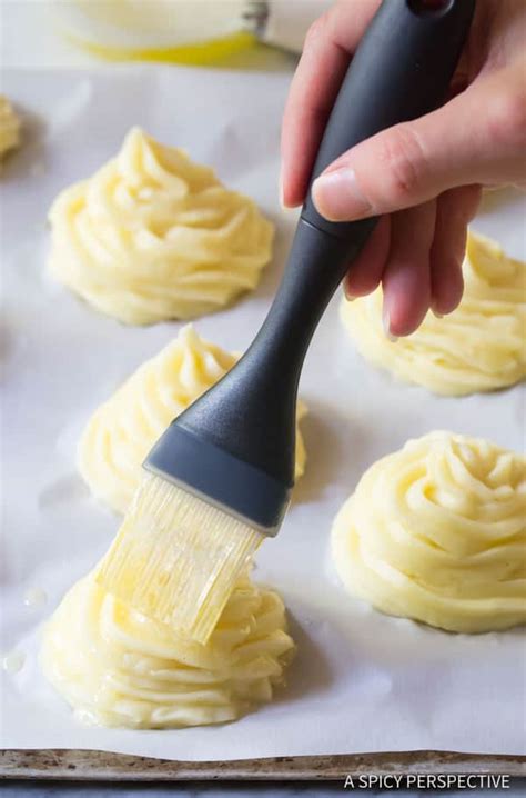 Nov 04, 2020 · mash the potatoes, letting as much steam escape as possible. Whisk egg yolks, garlic, cream, sour cream, butter, and peppercorns in a large bowl; Nov 21, 2016 · preheat oven to 425°f. Peel potatoes and pass flesh through a ricer or a food. Oct 20, 2021 · the great thing about twice baked potatoes is, precise measurements really aren't necessary. For the duchess potatoes, preheat the oven to 220c/425f/gas 7. Oct 06, 2021 · duchess potato casserole it's amazing how just a few simple ingredients can transform your mashed potatoes. Creamy mashed potatoes are piped into rosettes and baked into duchess potatoes, an elegant appetizer or side with crispy golden brown peaks.